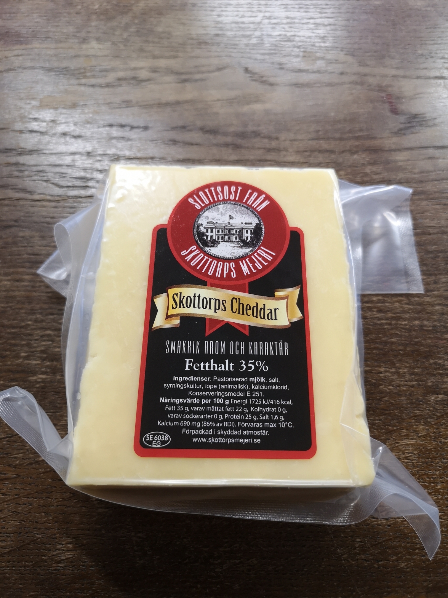 Cheddarosten är Englands mest kända ostsort. Den har fått sitt namn från byn Cheddar i Somerset där den tillverkats sedan 1600-talet. Kvantitetsmässigt är cheddarosten världens största ostsort. Skottorps Cheddar är en klassisk smakrik cheddar som lagrats i cirka 8-10 månader. Aromisk karaktär och härlig styrka. Skottorps cheddar är en riktig kalasost, given till kräftorna och på julbordet. Gjord på svensk mjölk från Skottorps Säteri.